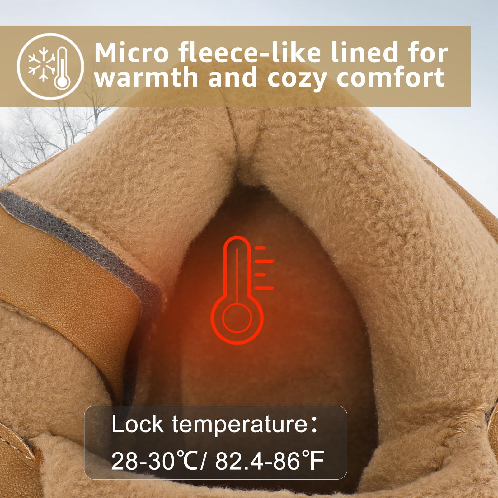 - [ Warmth ] Micro-fleece lined provides warmth under foot for a warm, cozy feel. These duck boots feature thermolite insulation rated to -15℉/-26℃, lock feet temperature between 28-30℃/82.4-86℉, keep your feet warm all day