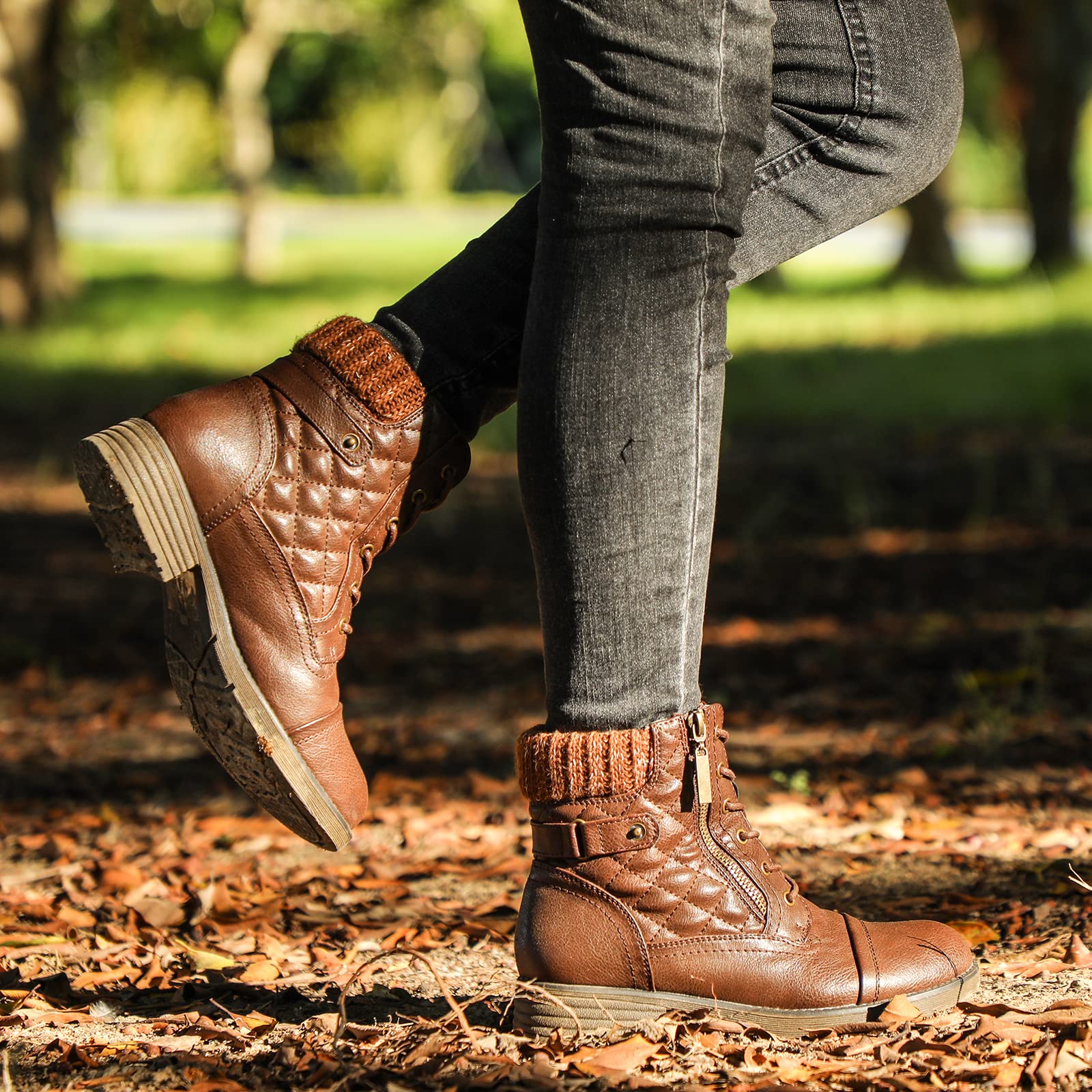 STQ Women's Combat Boots Lace up Ankle Booties